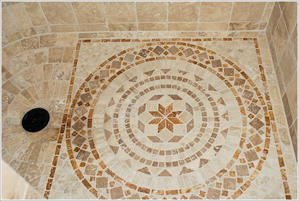 A standout element of this project is the combination steam/shower, which offers a relaxing and rejuvenating experience. The shower’s unique mosaic tile pattern adds an artistic touch to the space and creates a visual focal point.
