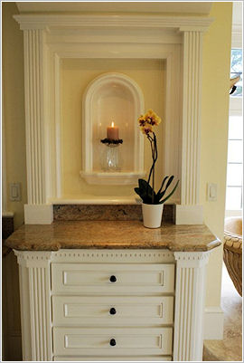 New cabinets were installed to provide ample storage, while the granite countertops, sinks, and faucets contribute to the overall elegance of the master bath.