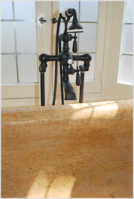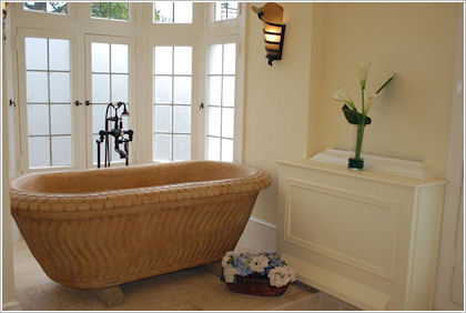 Another luxurious feature is the free-standing hand-carved tub, which provides an elegant and comfortable bathing experience. The custom faucet adds a bespoke element to the tub, further enhancing its sophistication.