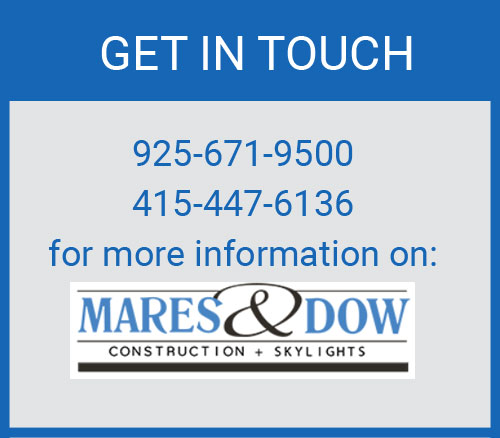 Mares & Dow Construction & Skylights performs all tasks in developing a good lighting plan and superb installation. Your main concern for lighting should always start with safety in mind. A well lighted home will always help prevent accidents for the young and the old. Residential lighting is governed by Title 24 energy Calculations in California. The type of lighting in areas like the kitchen and bathrooms are governed by each city’s building codes. Usually a fluorescent or LED type of lighting must be a percentage of the lighting of these areas. Interior lighting is governed by a lot of different needs an functions of a particular room. Different type of lighting is needed in a kitchen, bathroom and living area. And sometimes the installation of a dimmer may make the whole difference in lighting a room. We describe interior lighting as three functions. One, being ambient lighting or general lighting, which can be surface, recessed, track, low voltage, fluorescent or LED fixtures. Two, being task lighting for working areas, like the kitchen and bathrooms.Task lighting is meant to provide a high level of lighting at work areas, like sinks, countertops and islands. This lighting can also be achieved through surface, recessed, track, low voltage, fluorescent or LED fixtures. If cabinets are over counters, under cabinet fixtures such as fluorescent and LED strips should be used for nice even spaced lighting. Three, being what is called in-between lighting or general lighting, the common areas between the general lighting and task lighting areas. Recessed lighting has become the most popular lighting of today. The special uses besides general lighting used with recessed lights are wall washing, accent lighting and grazing. Surface light fixtures are defined by type and all come with different features. There are two types of pendant lights. A light that hangs down from a ceiling chain or chord. Another type of pendant light is the chandelier. Then there is the flush ceiling fixtures that can help decorate a room and wall sconces that can decorate a wall. Exterior lighting takes in all the lighting on the exterior of the house itself and all the lighting on the lot of the house. All exterior doors must have a light within six feet of door opening. The most popular exterior light used today is the motion-sensor light.