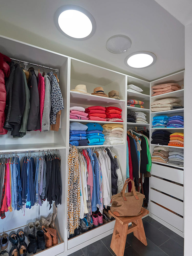 Sun Tunnel Skylights are a great way to bring natural light into the home in areas where skylights may not be the best fit. Sun Tunnel Skylights are perfect for laundry rooms, powder rooms, closets, and dark hallways. Let Mares & Dow Construction & Skylights put one in a walk-in closet where natural light helps bring out the color of your clothes or in the bathroom so you can see the true color of cosmetics.
